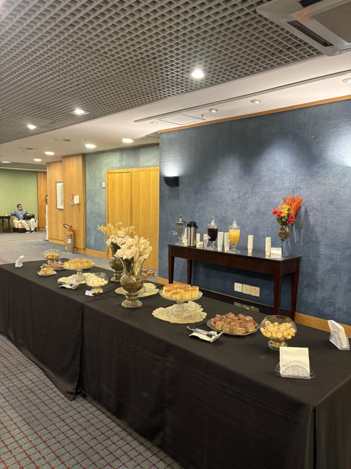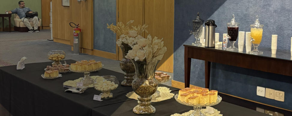 Perfeito para recepção de congressos, palestras e encontros profissionais. Bebidas quentes, pães, bolos e opções leves.